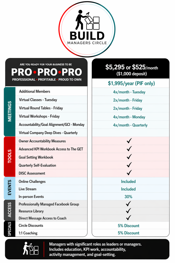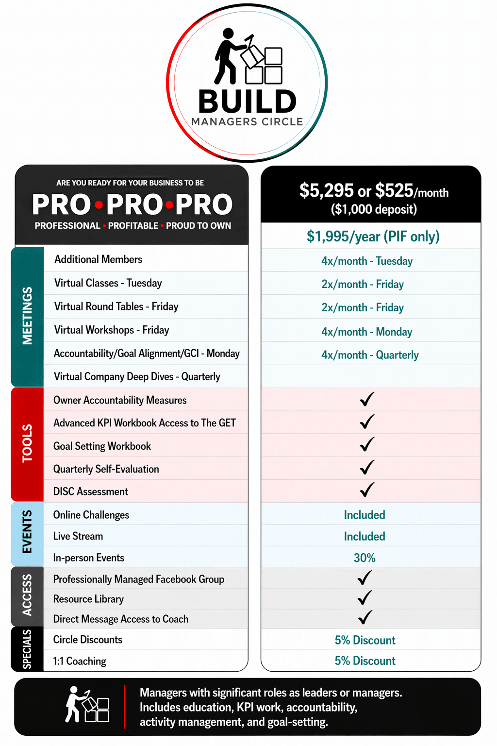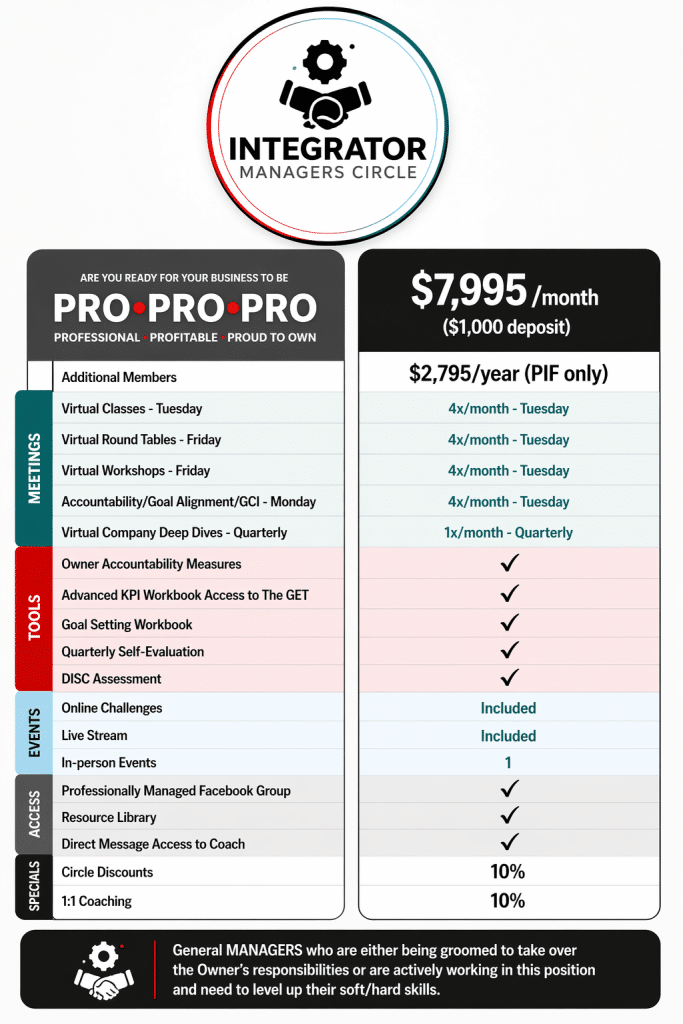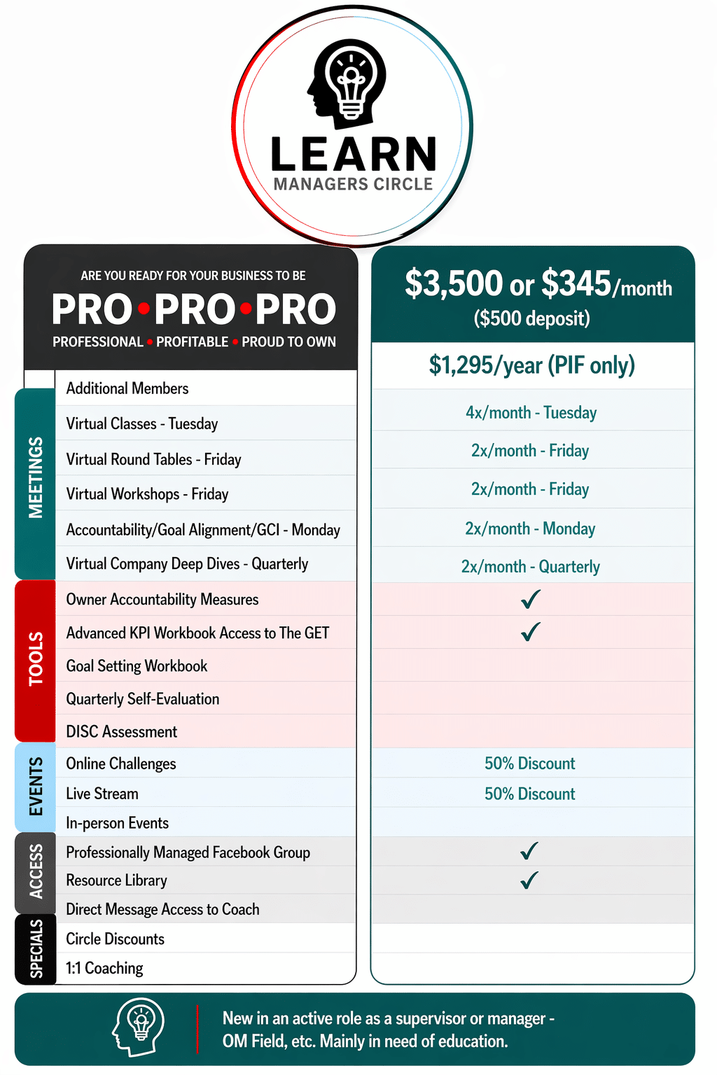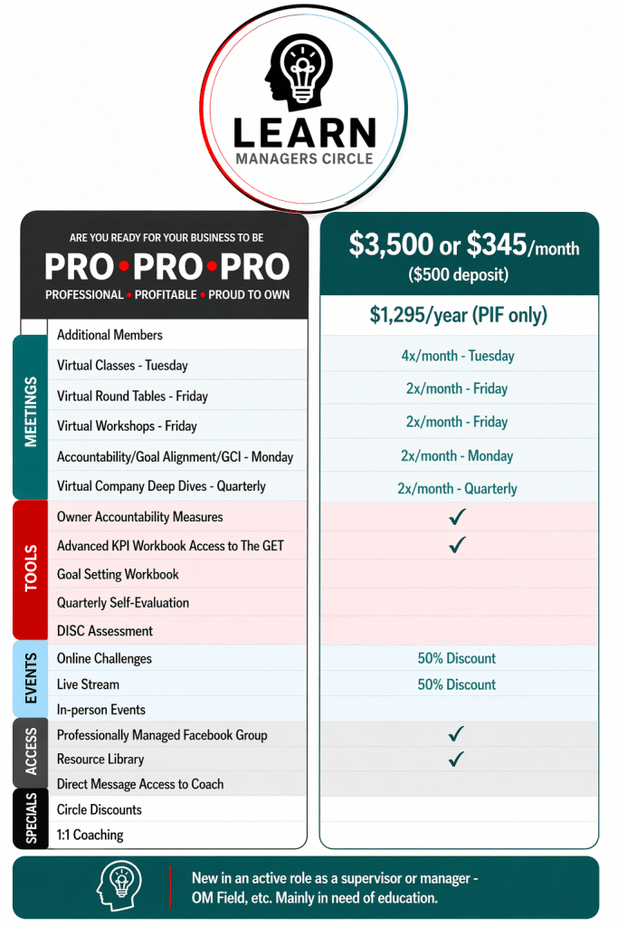 Stronger managers create a stronger business—period. When your leaders are developed properly, you reduce owner dependency, improve execution, create clear communication, and build real accountability across the team. That’s what leads to scalable operations, not chaos. Because growth doesn’t happen when the owner does everything—it happens when leaders step up and carry the load. Join the Managers Circle and build leaders your business can actually rely on.